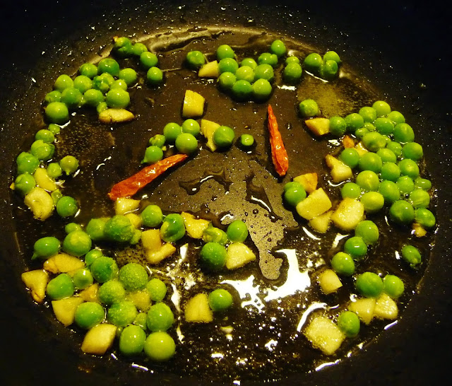 Käytä tässä mieluiten tuoreita herneitä, joten aloita riipimällä ne irti paloista. Määrät eivät ole niin tarkkoja, oman maun mukaan voi hyvin soveltaa. Pilko valkosipulit ja lisää ne pannulle oliiviöljy-voiseokseen. Lisää myös kuivatut chilit, mutta älä pilko niitä tai päästä siemeniä pannulle. Lisää herneet ja kun valkosipulit ovat hieman kypsyneet, sekoita soijakerma sekaan, mutta nouki chilit pois pannulta tässä vaiheessa. Lopuksi kaada pappardelle kastikkeen joukkoon ja sekoita hyvin. Mausta suolalla ja tuoreella mintulla.